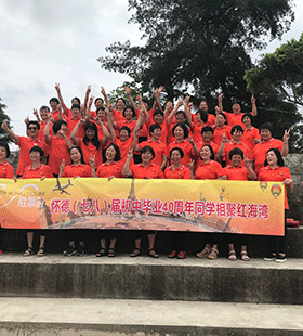 東莞懷德(七八)屆初中40周年同學聚會,大家歡聚一堂。穿著由哈馬校服設計的Polo衫相聚在紅海灣,緬懷昔日學生時代的往事回首?!静榭丛斍?】